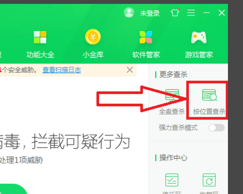 2、点击进入到木马查杀页面,在页面上可见“按位置查杀”。