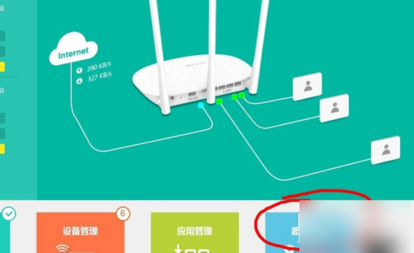 3、进入之后,看到主界面,下方的菜单有一个路由设置,点击一下。