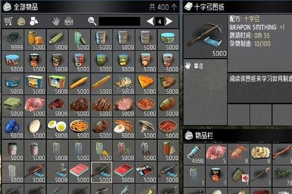 5、仓库指令是U键,按下后打开仓库,就可以看到系统的各种东西,里面有无限材料。