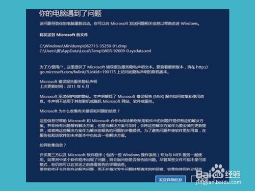 2、系统收集这些信息是希望通过大数据的方式进行解决,如果你们那边的人都出现蓝屏的情况,我们可以在官网进行调查,如果只是个人,我们可以通过电脑内部的设置或者卸载某些软件进行解决