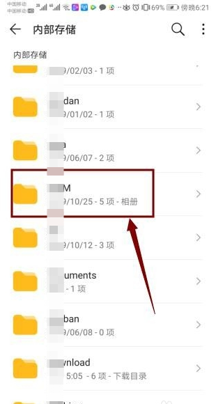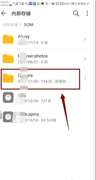 5、接下来,我们在“内部存储”界面点击“Camera”。