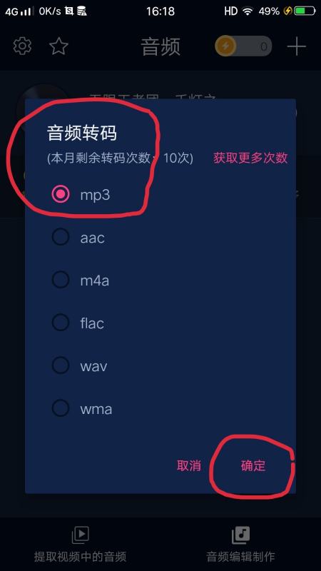 第五步、接下来选择需要转换成的音频格式,选择好MP3格式,点击确定。