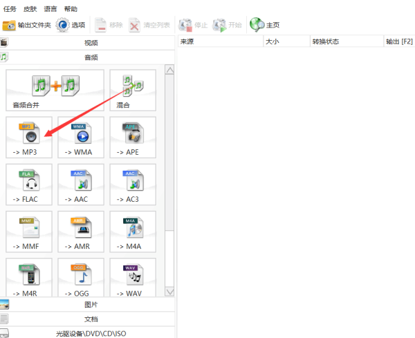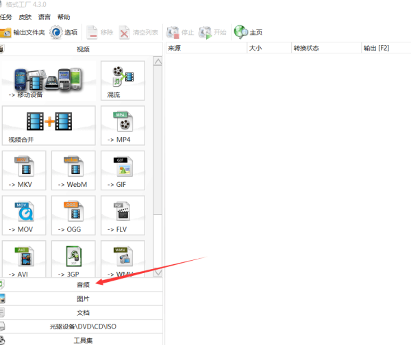 2.打开软件,默认进入的就是音频文件处理页面。除此之外,该软件还支持视频、图片、文档等文件的处理以及音视频混流等的处理