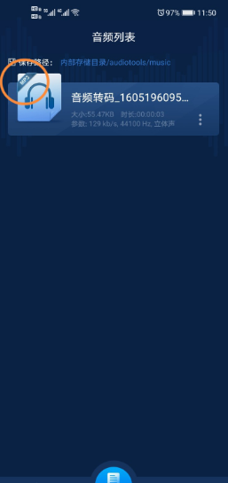 4、接下来在系统返回的“列表”界面中,就可以看到已转换成MP3格式的音频文件啦,手机将音频转换成MP3格式成功。