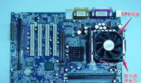 取下CPU的风扇,用毛刷清理风扇上的灰尘,如风扇和散热片能分开,散热片可用水洗干净;