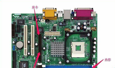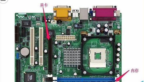 1.首先确定内存和显卡连接在主板上的位置,如下图: