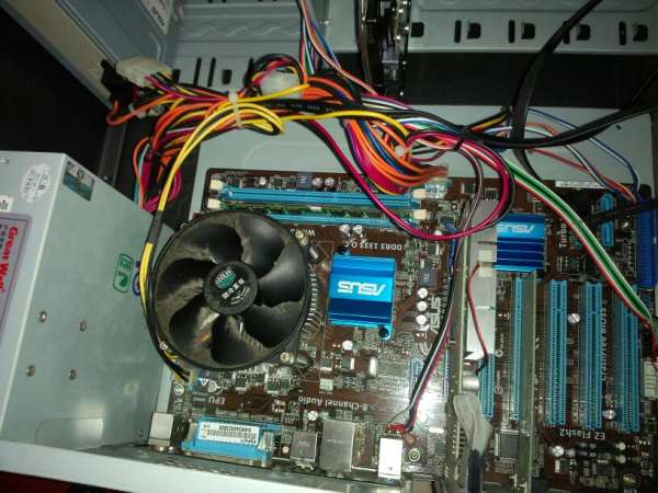 3、打开主机箱,将开关与主板的跳线拔下,短接一下,观察是否启动,启动则判断为开关按钮故障,不启动但是电源风扇转动,说明主板故障。