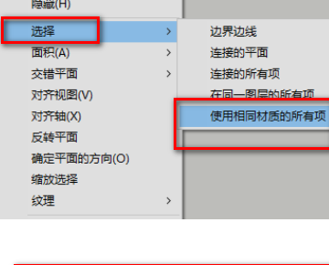 4、在选择的子菜单里,点击使用相同材质的所有项,如下图所示。
