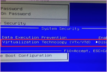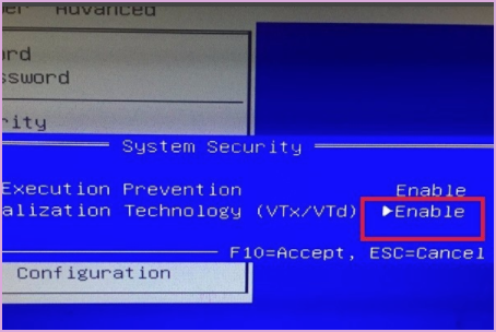 5.在切换enable选项之后,vt选项就被启用了。此时,按F10保存当前设置。