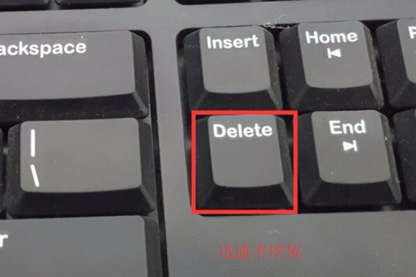 1、按电脑开机键后(或重启后),按Delete键,进入“bios”界面。