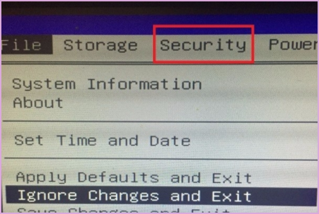 2、进入到bios界面之后,选择后边的security安全选项。