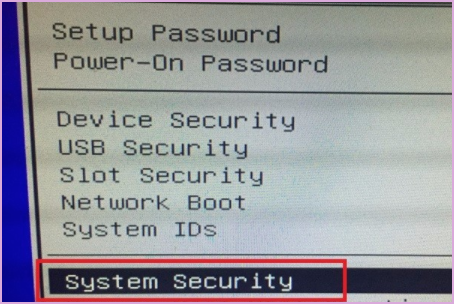 3、进入到security的界面,然后选择下方的systemsecurity系统安全选项。