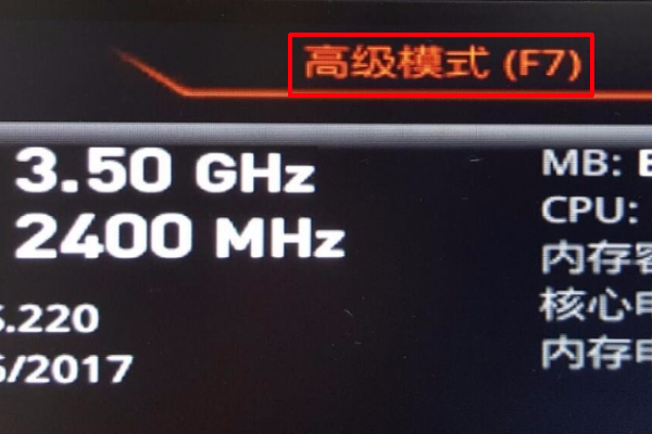4、然后在上方选择“高级模式”回车或者按F7。