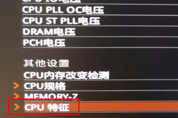 6、进入到“oc”界面后下翻找到“CPU特征”回车进入。
