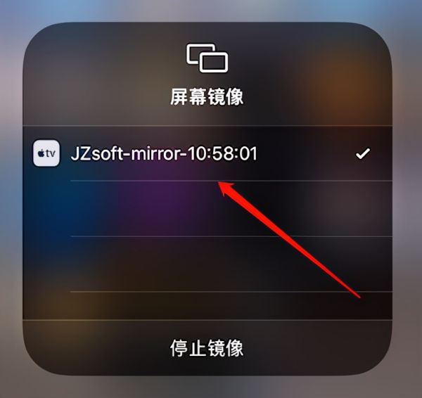 第三步、打开屏幕镜像后,在这里连接设备,设备名称:JZsoft-mirror开头的便是本软件