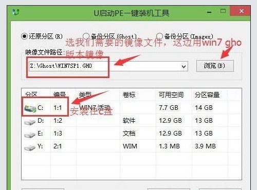 2.点击弹出式安装工具中的“浏览”,选择图像文件。以ghowin7版本镜像为例,将其安装到c盘上,点击“ok”。