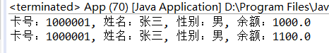 System.out.println("卡号:" + id + ", 姓名:" + name + ", 性别:" + gender + ", 余额:" + balance);