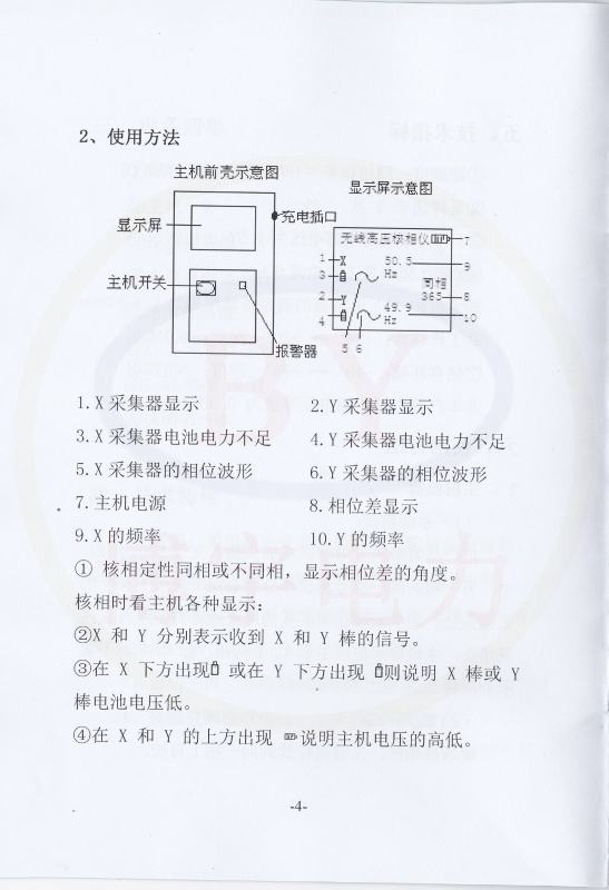 ⑤在测量≥10KV时,X和Y可直按同时放在导线或绝缘皮上进行核相。