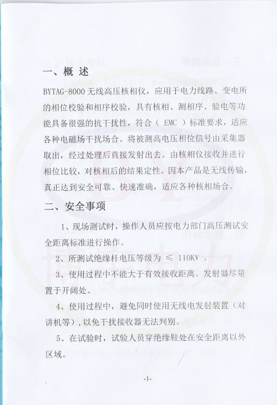 1、现场测试时,操作人员应按电力部门高压测试安全距离标准进行操作。