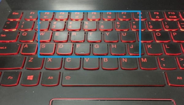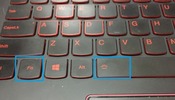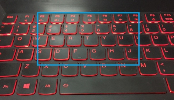 2、按一次组合键,键盘灯就会亮起来,键盘灯是特有的红色光,按第一次的光线是比较暗的。