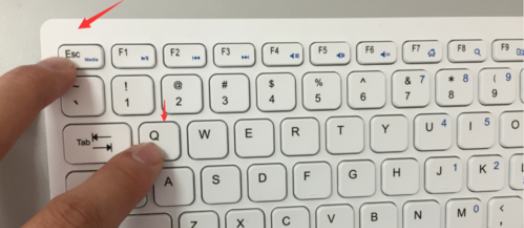 5.同时按“ESC”和“Q”。电源指示灯闪烁,表示键盘正在搜索,键盘会自动打开,如下图所示。