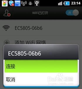 操作方法 01 我们用手机上网,搜索: wifi万能钥匙,然后将这个程序下载到手机并安装。 02 安装完毕后,我们打开wifi功能,然后打开“wifi万能钥匙”,我们会发现附近的wifi网络,我们现在试着破解一个无线wifi看效果,我们点击一个wifi信号。 03 然后开始试着去破解这个无线wifi,当然可能要提醒你开始流量进行连接,你选择“是”就可以了。 04 出现这个界面的时候,手机上方出现这个标志,说明我们已经成功连接到了wifi网络,现在我们已经可以用wifi上网了。相关文章