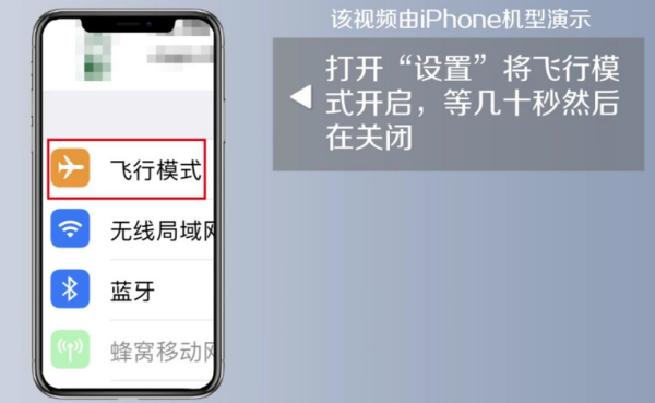 2、如果别人可以上网那就是手机网络模块原因,此时打开“设置”,将“飞行模式”开启,等待几十秒然后再关闭。
