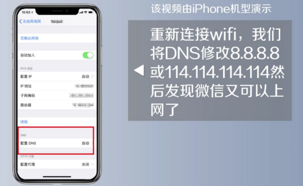 4、重新连接WiFi,将DNS修改为8.8.8.8或114.114.114.114即可。