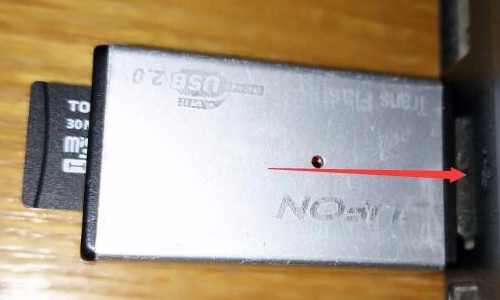 2、拿出内存卡后,还要使用读卡器,这种内存卡是tf卡,有专门的usb的读卡器,只要插在读卡器内就可以。
