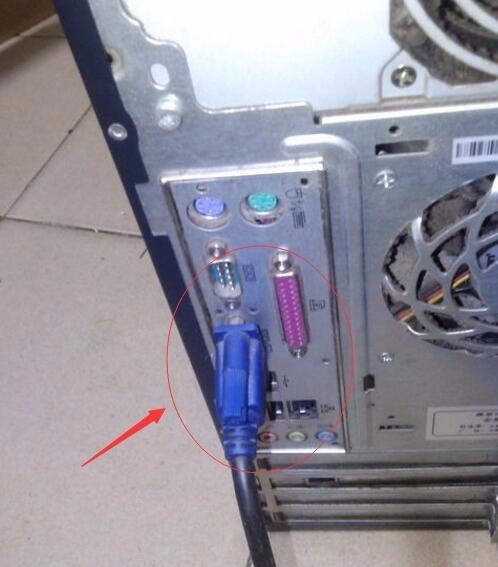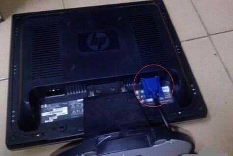 1:先在显示器上接上VGA线,接上后要把后面的两个螺丝固定。固定主要是担心在移时造成连接线脱落。(注意VGA线的接口是梯形,接上时要注意,反过来是接不上去的。)如图: