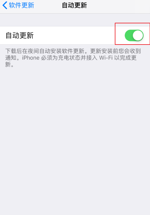 5、将自动更新后面的开关打开,当有可用更新时会自动升级。