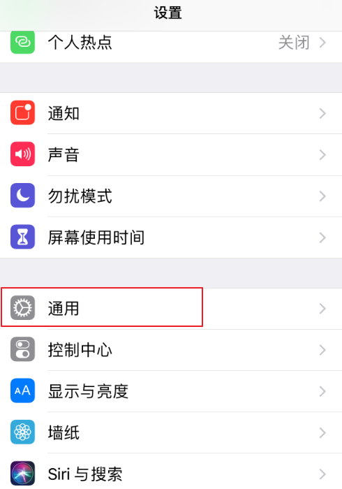 2、向下滑动手机屏幕,点击列表下方的【通用】。
