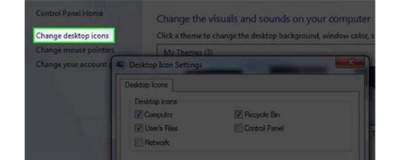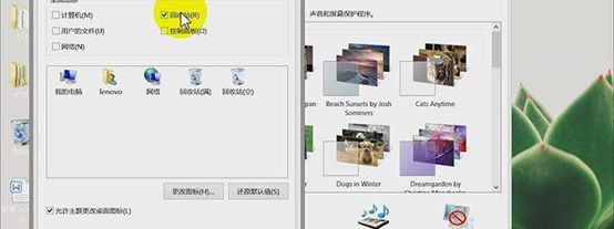 在弹出来的窗口中选择【更改桌面图标】,可以看到在这里有多个【桌面图标】的选项,包括【计算机】、【回收站】等等。