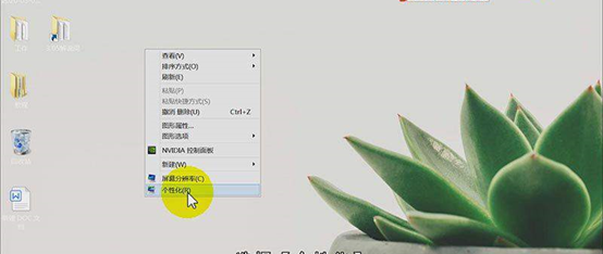 1,首先点击鼠标右键页面的空白处,再选择“个性化”选项,单击鼠标左键。