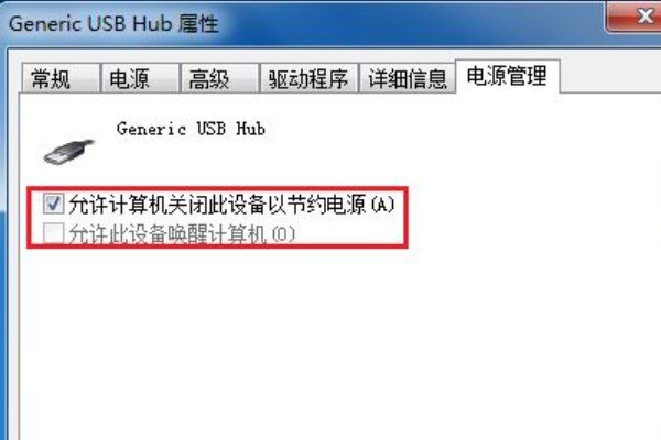 8、点击“电源管理”,取消勾选允许计算机关闭设备,USB可恢复使用。