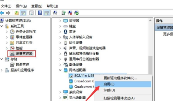 四、找到被禁用的端口后用鼠标右键点击此端口,弹出的菜单中点击“启用”即可恢复。