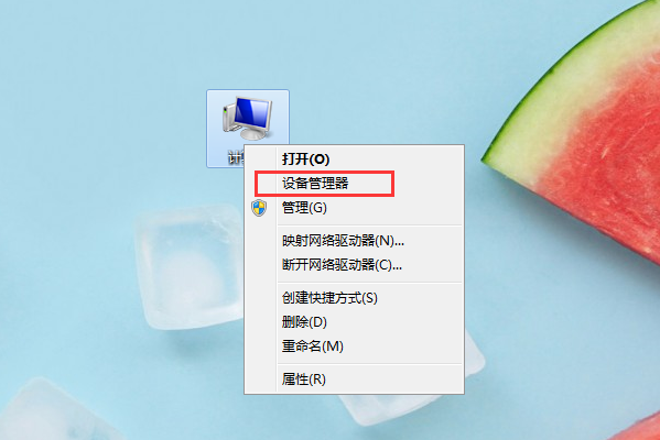 一、首先在桌面用鼠标右键点击“计算机”,弹出的菜单中点击“设备管理器”。