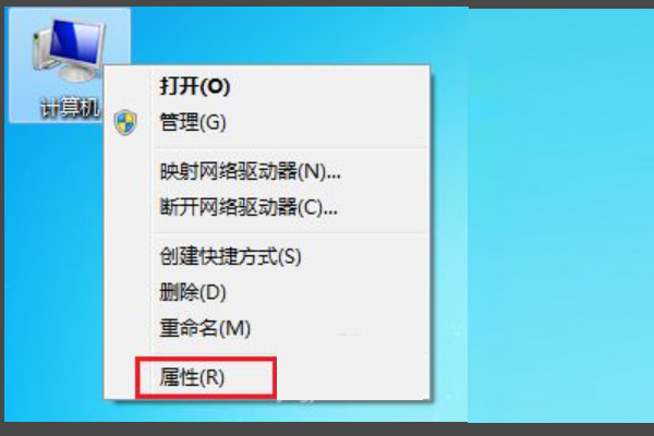 1、右键点击桌面上“计算机”(xp系统我的电脑),弹出弹框,左键点击“属性”按钮。