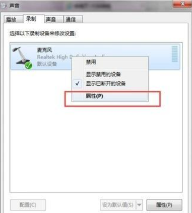 3.右键单击录音界面上的麦克风图标以打开属性。