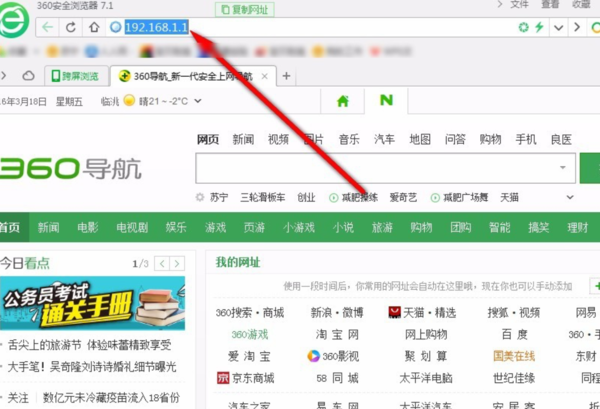 1、第一步需要在浏览器的【搜索栏】中输入IP地址、一般为【192.168.1.1】,输入完成后敲击键盘上的回车键。