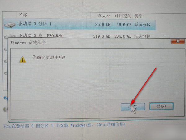 4、最后输入exit回车退出命令提示符,继续安装系统。