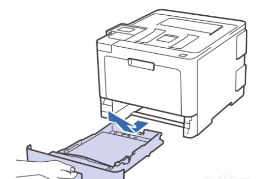 1、出现卡纸的时候,我们要将纸盘拉出打印机,看看纸张有没有问题