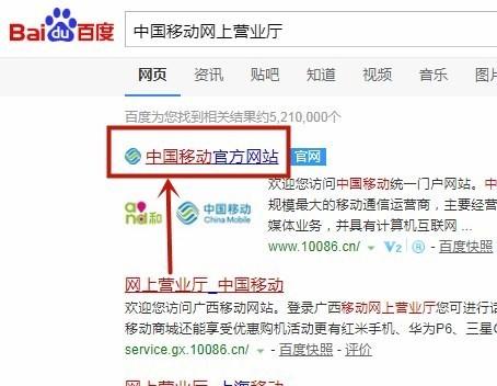 2、然后在搜索栏中输入中国移动网上营业厅并点击回车键。