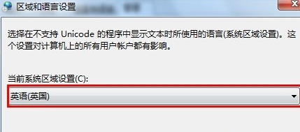 将当前系统区域设置设置成英语(英国),然后再点击确定按钮,最后再重启电脑。