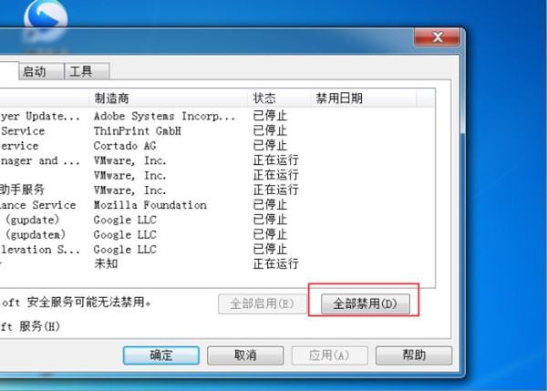 4、然后,完成上述步骤后,保持勾选状态,单击右侧的“全部禁用”按钮,然后单击“确定”按钮,如下图所示,然后进入下一步。