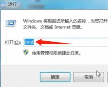 2、然后在弹出的运行框里,输入cmd回车,如下图所示。
