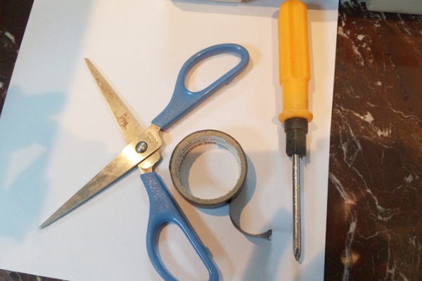 1、准备好需要的工具:十字螺丝刀;剪刀;绝缘胶带。