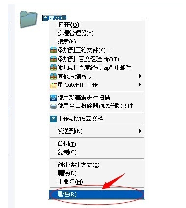2、选择指定文件夹,鼠标右键,选择”属性“选项。