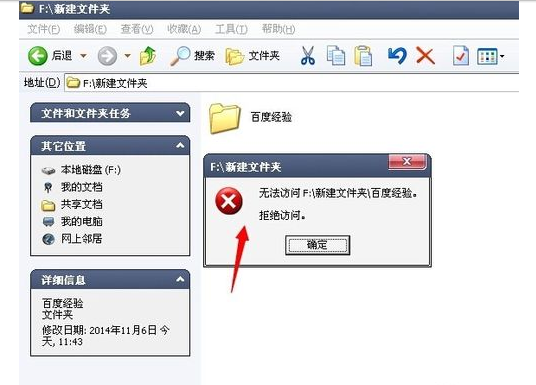 6、下面来打开这个文件夹,会提示:无法访问,或者拒绝访问。