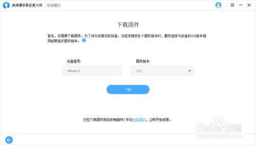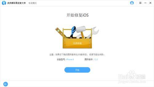 运行疯师傅苹果修复大师,选择“标准模式”(无数据丢失)进入下一步。